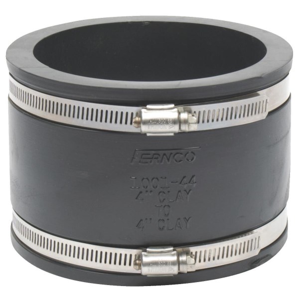 Clay pipe to clay pipe flexible coupling with 2 stainless steel clamps.