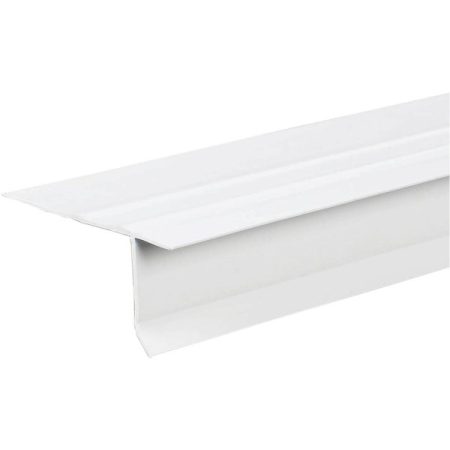 For both new construction and reroofing. Serves as a starter strip and provides a true edge with which to line up the roof. Also eliminates roof repair, avoids wall decolorization, and roof rot. 10 Ft. length. 3 In. nailing edge and 1.5 In. drop. 0.011 In. nominal thickness. White.