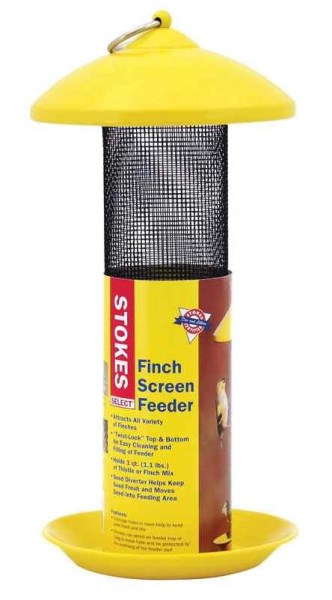 Feeder design allows several finches to perch on feeder tray or cling to sides of mesh tube while being protected by the overhang of the feeder roof. Seed diverter helps move seed into feeding area and twist-lock top and bottom make this feeder easy-to-fill and clean. Drainage holes in base…