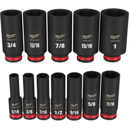 $37.50The MILWAUKEE 12-Piece SHOCKWAVE Impact Duty 3/8 In. Drive SAE Deep 6-Point Socket Set features the boldest, longest-lasting markings and extreme impact durability in high torque applications. The stamped and ink-filled size marking makes selecting the right socket every time easy throughout the life of the socket. These Milwaukee sockets…