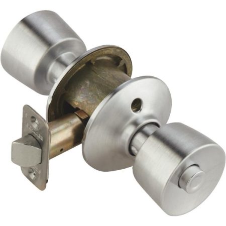 $13.00Bed/bathroom privacy knob lockset. For interior doors. Exterior knob locked by inside push-button. Unlocked by turning knob from interior or a narrow tool from exterior. Dual option latch includes: 1/4″ round corner and 1″ circular drive-in latch, adjustable for 2-3/8″ or 2-3/4 backsets. Strike: 1/4″ round corner full-lip strike. Grade…