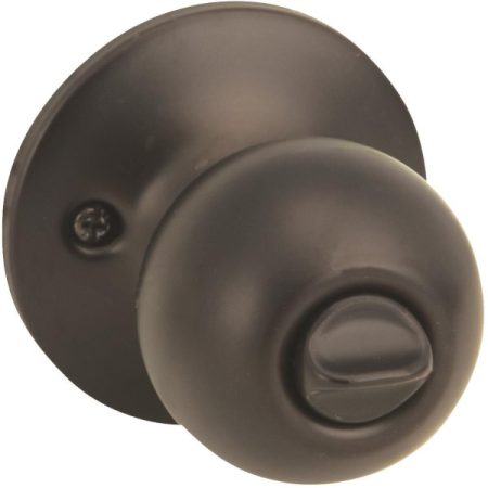 $8.25Consumer clear pack. Ball style. Packaged with an adjustable latch, interchangeable for 2-3/8″ or 2-3/4″ backsets with a square face plain latch. For bedroom and bathroom doors. Turn button on interior knob. Turning button locks both knobs. Lock may be unlocked from the exterior with a narrow tool.