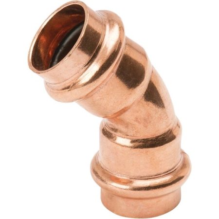 The NIBCO Press System copper 45-degree elbow features an inboard bead and EPDM O-ring. Simply applying pressure from a pressing tool tightens the O-ring onto the tube, ensuring a clean, watertight seal in seconds with no flame, solder or flux. The elbow has press connections. The fitting provides a method…