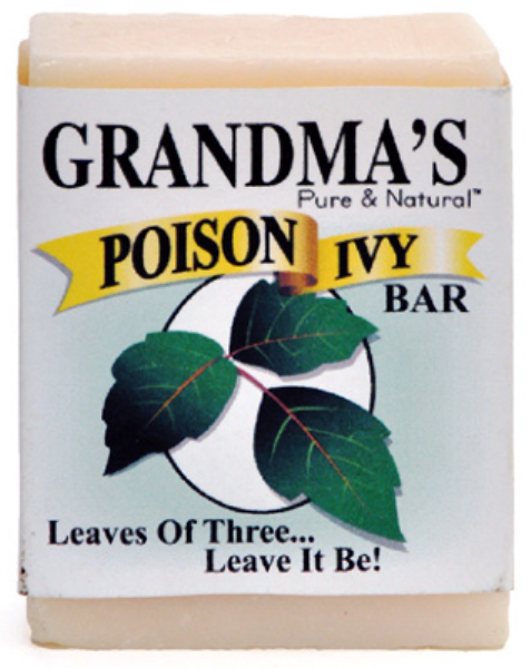 GRANDMA’S Poison Ivy Bar, 2.0 oz.If exposed, wash contact areas well with cool water and GRANDMAu2019S Poison Ivy Bar to remove poison oils. (Cool water keeps the pores closed reducing the likelihood that the oils will penetrate the skin.) If rash develops wash & rinse affected areas with Poison Ivy Bar and then pat a little lather on the rash and leave on to dry. Repeat as necessary to control itch. (Lather dries clear and won’t stain fabrics.) Colloidal oatmeal also helps calm inflamed irritated skin.r