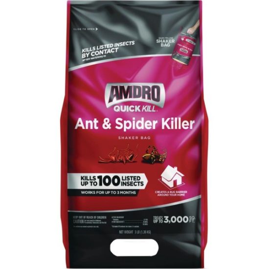 Ant and spider killer in a convenient shaker bag for easy distribution. Kills up to 100 listed insects. Works for up to 3 months. Creates a bug barrier around your home. Ideal for use on lawns , ornamentals, home perimeter, and flower gardens. Easy to use shaker bag.