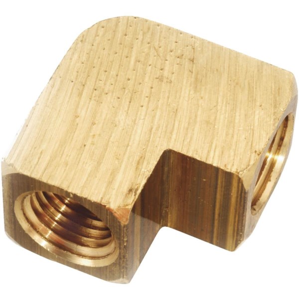 F.I.P. (Female iron pipe) thread yellow brass pipe 90 deg. elbow. Machined part made from extruded brass rod. Rated at 1000 psi (pounds per square Inch) up to 250 F (degree Fahrenheit). Manufactured to include no more than 0.25% weighted average lead content on wetted surfaces.