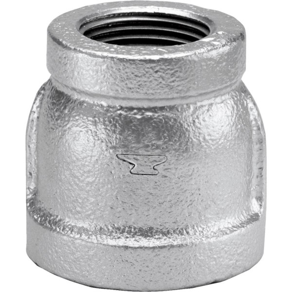 Galvanized reducing coupling made by Anvil. Malleable iron pipe fittings designed with high tensile strength. Galvanized finish resists rust.
