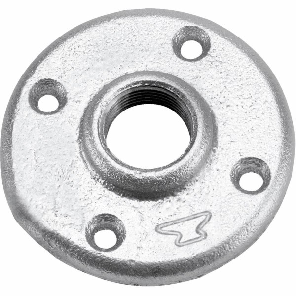 Galvanized floor flange made by Anvil. Malleable iron pipe fittings designed with high tensile strength. Galvanized finish resists rust.
