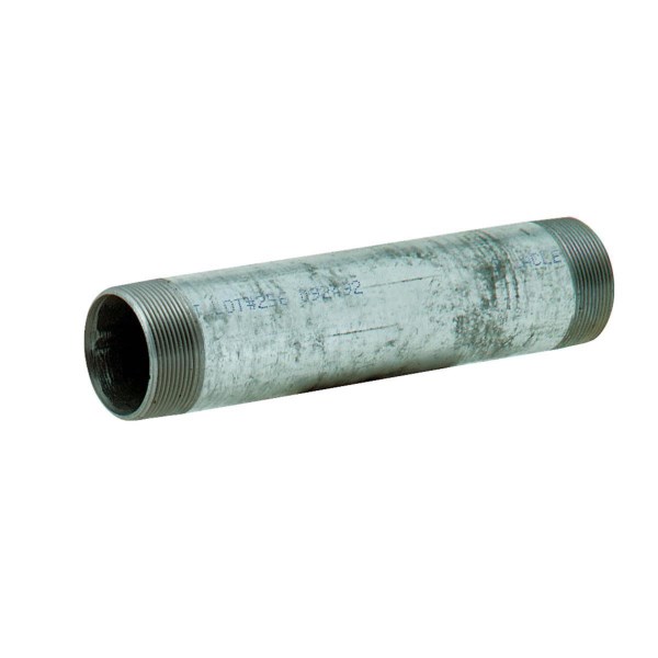 Welded steel pipe. Hot dipped galvanized, meets ASTM A/53 standards. Schedule 40, standard pipe. Manufactured to include no more than 0.25% weighted average lead content on wetted surfaces.