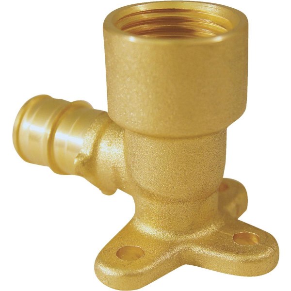 3/4″ Expansion PEX A x 1/2″ Female Pipe Thread (FIP) Drop Ear Elbow. Type A. Lead free brass. Use with shower arms in tub/shower installations. For use with cold expansion PEX A pipe and sleeve system. Compatible with Uponor (Wirsbo) ProPEX piping systems (ProPEX is a trademark of Uponor). ASTM F1960.