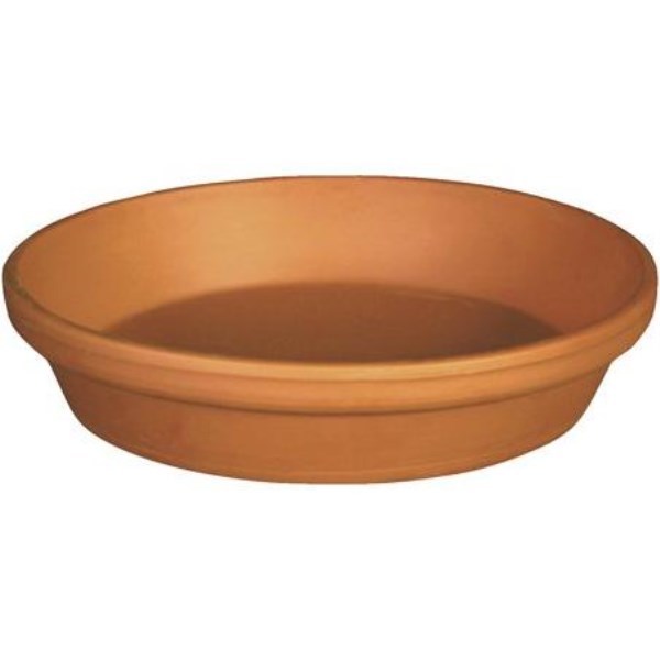Standard clay flower pot saucer. Ideal for a wide variety of decorating styles and tastes. Can be used on decks, patios, in flower beds, or other flower arrangements.