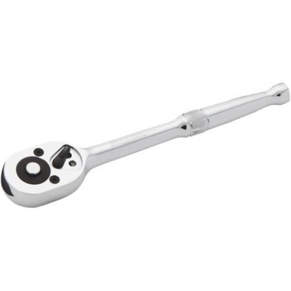 This Channellock quick release ratchet offers 72 teeth with a 5 deg (degree) swing for better performance in tight spaces. Not having a thick head makes it efficiently designed for practicality, making it easier to use in tight spaces. The ratchet features a textured band for greater gripping power. Constructed of chrome vanadium steel provides durability and strength. Meets or exceeds ANSI (American National Standards Institute) specifications. Lifetime warranty.