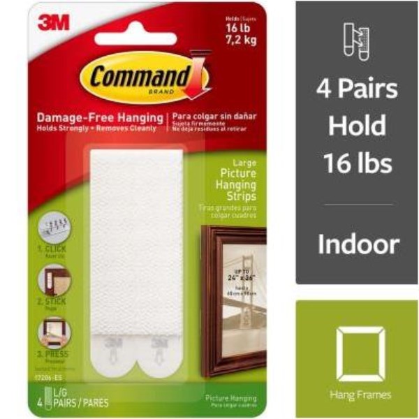 Decorate how you want, when you want – without damaging your walls. 3M Command Interlocking Picture Hanging Strips let you fearlessly hang pictures without nails or tools. Make decorating quick and easy. These hanging strips are not only great for picture frames but also for creating a gallery wall, hanging college dorm decor, wooden letters, nursery decor, acoustic foam boards, and more. Hang items on many smooth surfaces including painted walls, wood, tile, metal, glass, and more. Secure the strips by clicking them together. Just one click tells you they’re locked in place and holding tight. Whenever you’re ready, these strips remove cleanly and damage-free, leaving no cracked plaster or sticky residue. With the 3M Command Interlocking Picture Hanging Strips, you’ll be finished decorating in no time.
