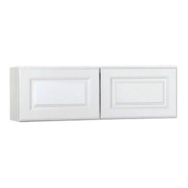 Hamilton raised panel bridge wall kitchen cabinet in a White Thermofoil finish. Traditional raised panel style. Also ideal for use throughout the house like laundry, craft room and basement or garage work room.