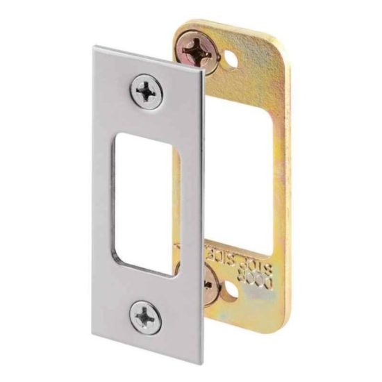 This deadbolt strike is constructed from steel. Installs into your wood or metal door jamb. Comes complete with fasteners for a quick and easy installation.