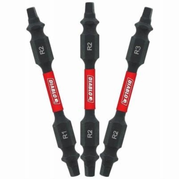 Diablo’s driver bit range of Square bits delivers maximum performance, extreme durability and up to 50x longer life when installing and removing fasteners. An optimized tip design provides a strong, precise grip that reduces wear, stripping and slippage. Torque Resistant Design absorbs torque for less stress at the tip when tightening and removing nuts and screws. This range is Impact Strong, delivering increased shank stability and durability in cordless and corded impact and drill drivers. Sizes: 2-1/2 In. SQ1/SQ1, SQ2/SQ2, SQ3/SQ3.