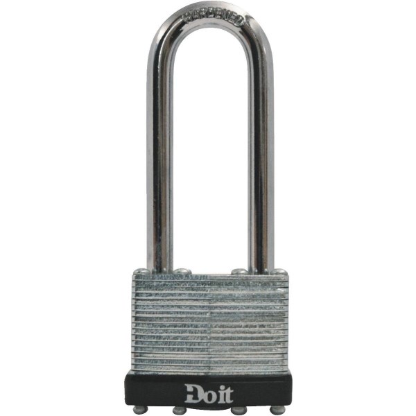 Value priced security for basic applications. 1-1/2″ (38mm) wide laminated steel case with 4-pin tumbler mechanism. Dual-locking system independently locks each shackle leg for added strength. Plastic bumper protects against marring and scratching. 1/4″ (6mm) hardened steel shackle. 2 keys included.