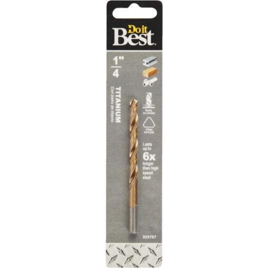 Super hard gold colored titanium nitride coating provides greater lubricity for freer and faster cutting with less pressure. Reduced shank for drilling larger holes with 3/8″ drill. No center punch needed. 135 deg. split point starts cutting immediately.