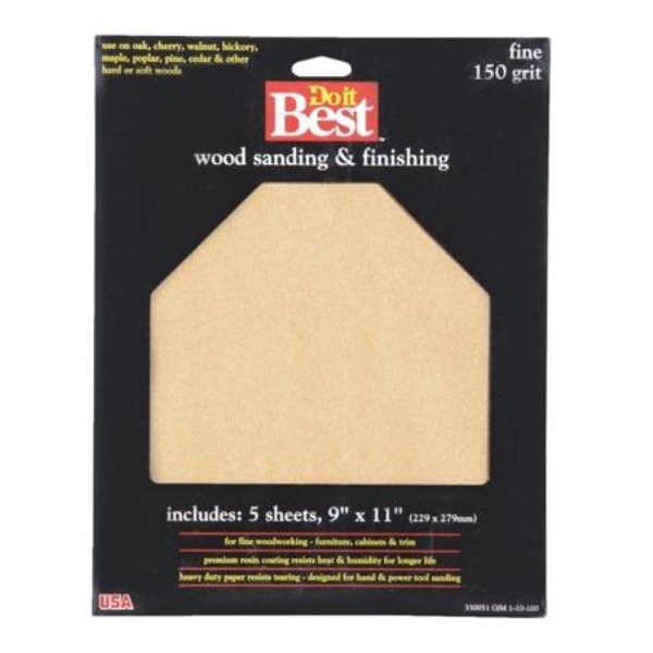 Ideal for finishing bare woods. Used in fine woodworking and cabinet making. Features resin coating that outlasts ordinary glue bond sandpaper.