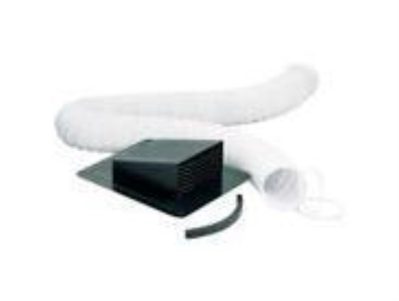 Kit contains everything you need to vent both 3-inch and 4-inch exhaust fans. Features a low profile exhaust hood with removable collar. The hood has a molded water barrier ring that prevents water from entering. The hood is constructed of high-impact co-polymer resin that resists ultra violet rays and extreme temperatures. Kit includes black exhaust hood, 4-inch x 8-foot vinyl ducting, 2 clamps, and a 3-inch to 4-inch foam adapter ring. Fan not included.