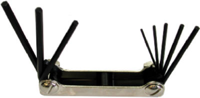 Best quality chrome nickel alloy steel. Hardened and tempered for maximum life. Ends are beveled, slip easily into screws. Wrenches easily replaced by removing a single bolt; snap into right angle position, can be used at any angle. Folds up like knife. 4-1/4″ long handle fits the hand; easy-to-grip and turn. Sizes include .050