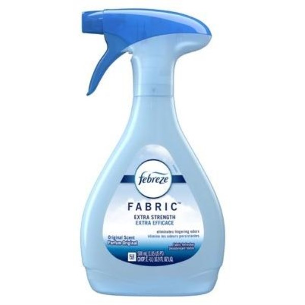 Eliminates heavy odors and freshens fabrics, carpets, and air. Eliminates pet, smoke, cooking, and musty odors. Spray fabric evenly until slightly damp. Odors fade as the items dry. Trigger spray bottle. 16.9 fl. oz. Lightly scented.