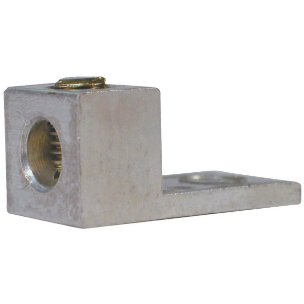 Dual rated 1-conductor aluminum solderless lug, made from high-strength aluminum alloy. Suitable for use with either copper or aluminum conductors. Electro-tin plating provides low contact resistance. Chamfered wire entry for easy installation. UL (Underwriter’s Laboratories) listed, CSA (Canadian Standards Association) listed. 2 per clamshell.