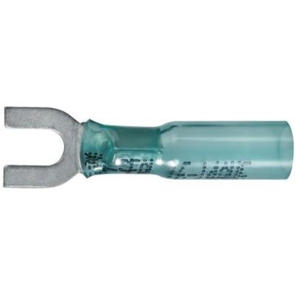 GB Xtreme spade terminal constructed with heat shrink insulation. Adhesive lined to waterproof and environmentally seal electrical connections when crimped and heated. Insulates and protects connections from wire pullout, moisture intrusion, and abrasion. Heat-activated adhesive melts and flows to create a seal. Resists salt water, oil, gasoline, and other environmental contaminants. Rated at 600 volt maximum. Temperature rating: 221 deg (degrees) Fahrenheit/105 deg Celsius.