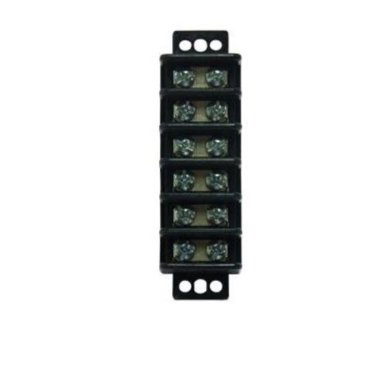 Terminal block for connecting electrical wires using screw clamps. Rated at 30 amps/600 volts maximum. Temperature rating: -40 deg (degrees) F (Fahrenheit)/-40 deg C (Celsius) to 260 deg F/130 deg C.