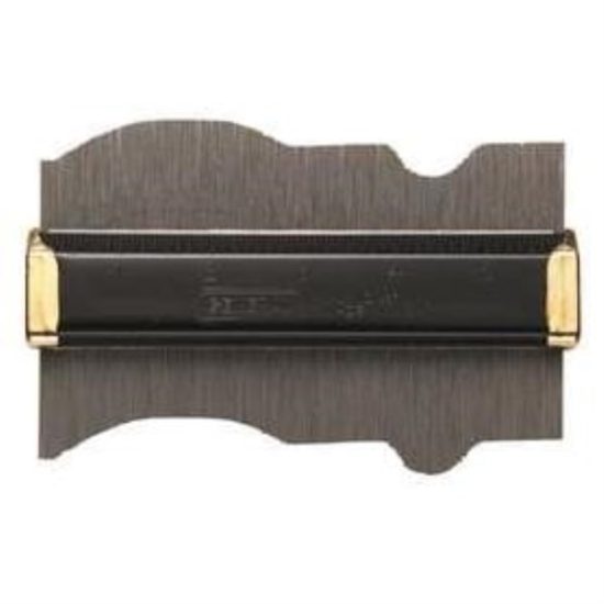Ideal for woodworking, linoleum installation, or any job where contour duplication is essential. Inch graduation on body. Stainless steel pins. Component parts are enamel painted and brass-plated. Size is 6″ x 3-1/2″.