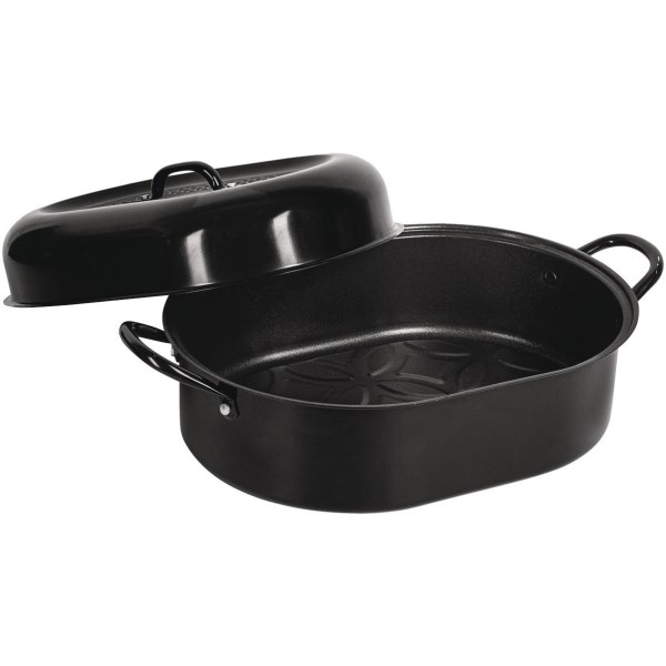 Ultra-durable, nonstick mineral and diamond-infused coating ensures the ultimate release. A covered roaster is the best way to cook. With the lid on, the moisture within the confined space will be condense and keeping the poultry moist. Oven safe, up to 500 degrees F. 100% PFOA Free. Dishwasher safe. 10 year warranty.