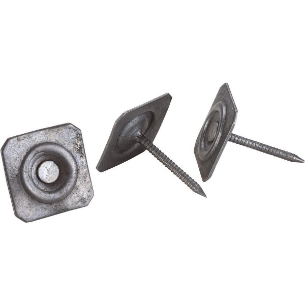 Bright ring shank with square metal cap. For applying roofing asphalt shingles, insulation board, and felt to wood substrates. Large 1In. head and 12-gauge shank provide greater holding power. Piece counts are approximate.