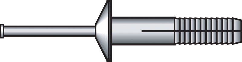Formed from engineered plastic and drive nails, the Truss Head Anchor is a fastening system that consists of two parts. It is installed by inserting the nylon shank into a pre-drilled hole and hammering the head of the nail until it meets the head of the anchor body. Driving the nail expands the split ends and allows the ribs to grip the wall of the hole. Common applications and uses include brick ties and masonry anchorage, electrical fixtures, furring strips, and aluminum frames.