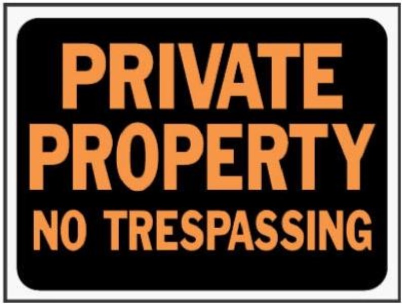 This easy to ready durable Private Property No Trespassing clearly states its message with it bold color scheme and lettering.