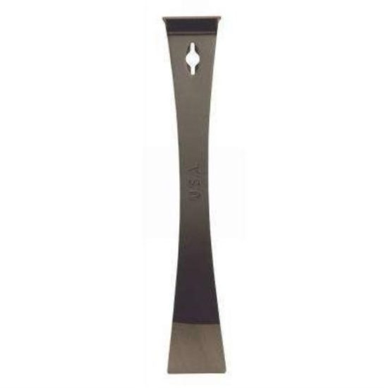 Used to remove molding, open boxes, scrape paint, and pull nails. High-carbon steel, hardened and tempered. 90 degree angle. Ground scraping end. Nail slot.