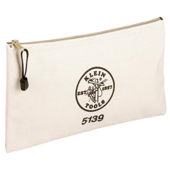 Sturdy No. 10 canvas pouch with heavy-duty brass zipper. Convenient storage for pliers, wrenches, and other tools.