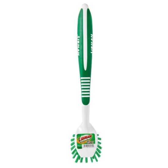 48 tufts of extra durable 7/8 In. polymer fibers. 8 In. ergonomic rubber-grip handle with hanger hole. Tough scraper edge for stuck-on messes.