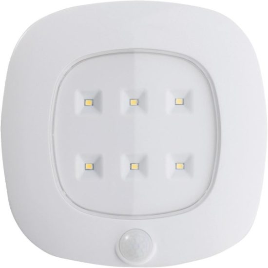 Motion sensor battery operated LED (light emitting diode) ceiling light. Integrated LEDs eliminate the need for light bulbs. Installs nearly anywhere with screws or drywall anchors, included. No wiring or plugs required. Ideal instant, hands free illumination for closets, attics, crawl spaces, and stair landings. Features an on/off timer. 125 lumens. Requires (3) C batteries, not included. 5.8 In. W. x 5.8 In. L. x 1.8 In. D.