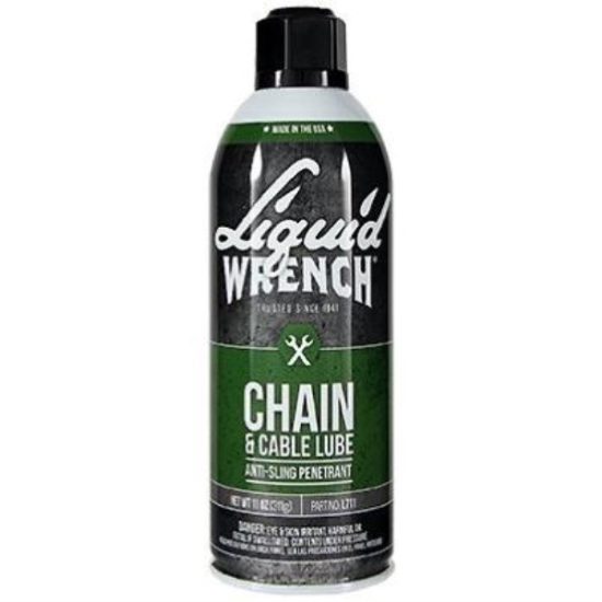 Liquid Wrench universal chain lubricant penetrates, lubricates, and clings. Apply to any chain or wire cable. Quiets all types of open chains and flexible cables. Stays put on moving parts, reduces friction, prevents corrosion, reduces wear, quiets, extends life. Anti-sling formula. Safe for rubber O-ring and standard chains. Use on motorcycles, bicycles, automotive cables, farm equipment, ATV’s, garage doors. 11 oz. aerosol.