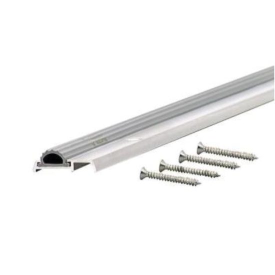 AP158 series. 36 In. sturdy extruded aluminum with replaceable vinyl insert. Installs on threshold or on bottom of the door 1-3/8 In. W. x 7/16 In. H.