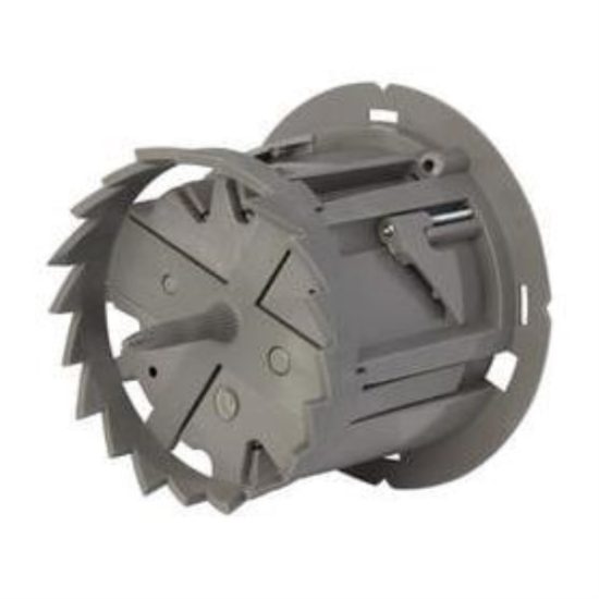 Ceiling box featuring a built-in hole saw that cuts the perfect sized hole every time. Includes a piercing drill bit located at the center of the blade to allow for location accuracy during installation. Raised mounting rings with center hole are located inside the back wall of the box for surface mount installations, basement, or attic studs. Ideal for mounting light fixtures and smoke & carbon monoxide detectors. Requires 9/16-inch driver, not included. Supports fixtures up to 6 pounds, 2-1/2 inches deep. Not for use on lath and plaster walls.