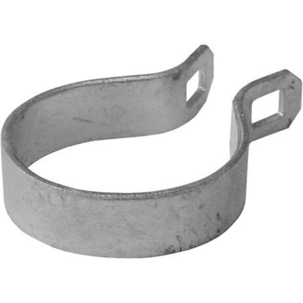 Steel band brace for chain link fencing. Carriage bolt not included. Features a galvanized, zinc coating for long life.