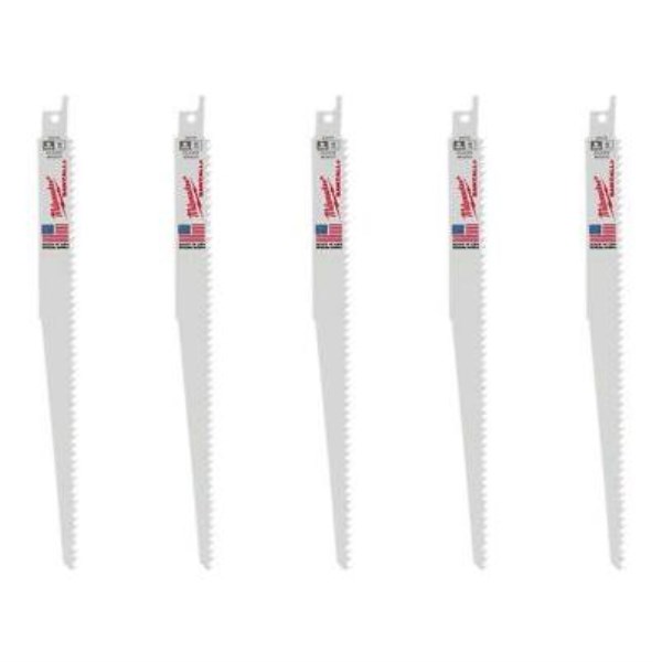 Milwaukee SAWZALL fleam ground clean wood cutting blades are designed for the toughest professional jobs. Sawzall blades for wood feature 6 TPI configurations, heat treatments and blade materials designed to maximize performance in a variety of clean wood and green wood cutting applications. The Milwaukee SAWZALL wood blades have deep gullets to give you 25% faster cutting than standard blades and a fleam ground process that creates super sharp teeth for clean cuts. These SAWZALL blades feature matrix II bi-metal teeth for greater durability and endurance with 1/2 in. Universal Tangs that fit all SAWZALLS. Includes (5) blades per package.