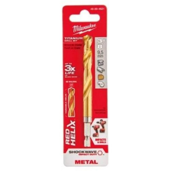 The Milwaukee SHOCKWAVE RED HELIX Titanium Drill Bits are engineered for extreme durability and long life. The 135 degree Split Point Tip Provides a Precision Start and Prevents Walking. The VARIABLE HELIX design includes an aggressive 35 degree helical angle, which ends at 15 degrees, these titanium drill bits with RED HELIX provide Rapid Chip Removal limiting heat buildup to Stay Sharper Longer. The bits also feature an internal ENHANCED TAPERED WEB that greatly increases their strength, reducing premature breakage. The titanium drill bits are ideal for various applications, including but not limited to wood, plastics, and metals. Pro Packs feature 5 bits of the same diameter, each bit providing up to 5X life vs. Black Oxide Drill Bits.