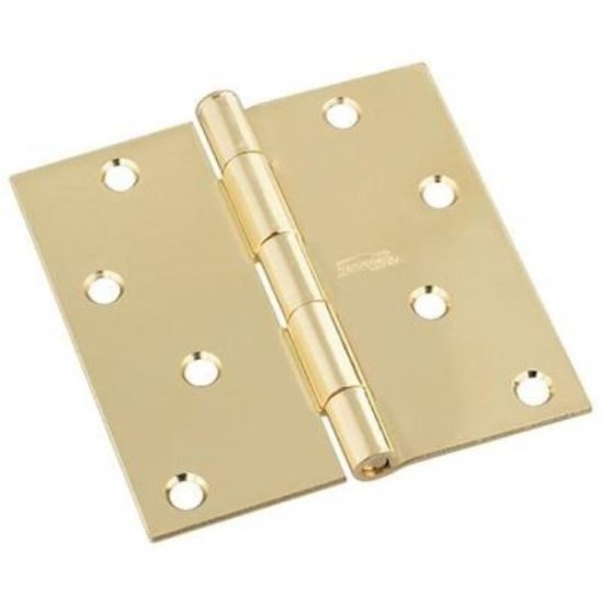 Square corner residential door hinge (National Model SPB512) for use on interior residential doors. Square corner. Removable pin for quick and easy installation. Screws included. Steel material.