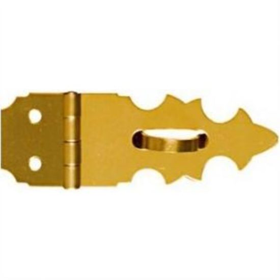 National catalog model No. V1824. Miniature brass. Designed to add a decorative appearance to small chests, jewelry boxes, craft projects, etc. Hasp style matches National’s model No. 1810, 1811, and 1816 decorative hinges. Can be used with national’s model No. 1880 padlock. Surface mount. Made of solid brass. Screws included. 1 per pack.