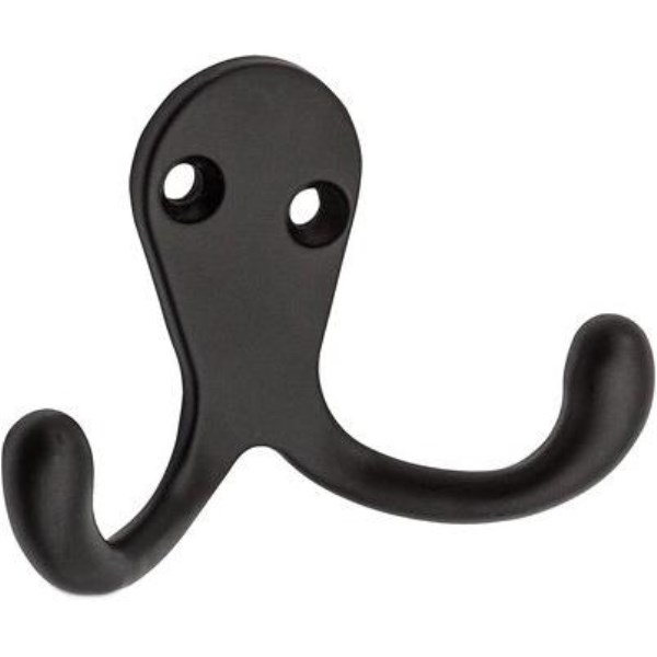 163 series. Double hook designed to mount on a door or wall to hold long and heavy garments. Decorative ball tip design. Zinc die-cast. Comes with 2 flat head wood screws (#6 x 3/4 In.) for installation.