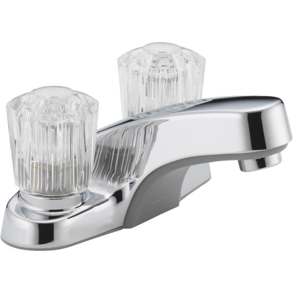 Chrome finish. Two clear knob handles, three-hole 4″ centerset installation, without pop-up. 1.2 GPM (gallons per minute) flow rate, 1/2″ I.P.S. 1″ deck thickness. WaterSense labeled product. Lifetime faucet and finish warranty to the original consumer purchaser to be free from defect in material and workmanship. Core series.