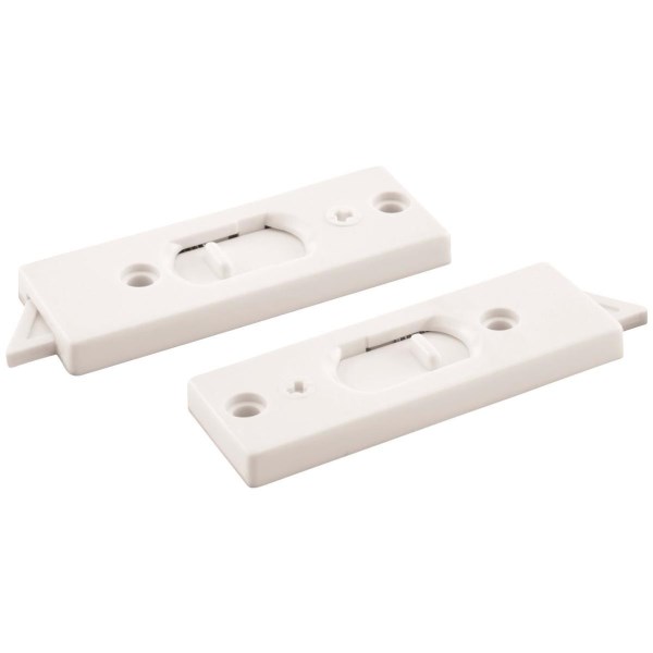 This tilt latch is constructed from white plastic. It features an easy to install spring-loaded design. This style tilt latch is used by several window manufacturers.