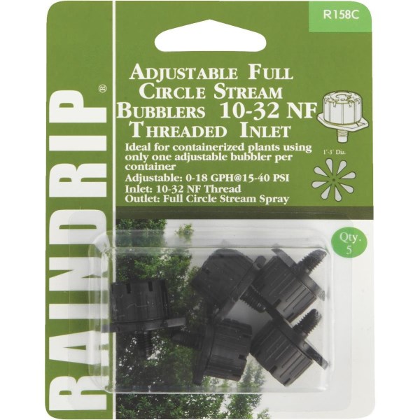 Convert existing 1/2″ underground sprinkler systems to low-flow watering where a drip-circuit cannot be set up. Features a full-circle stream-spray with a maximum spray diameter of 3′ at 30 psi (pounds per square inch). Flow rate is adjustable from 0 to 13 GPH (gallons per hour) at 30 psi. Inlet provides a secure fit and easy connection.